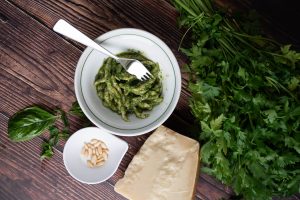 – Handmade trofie with Genovese pesto – Handmade pizza Margherita